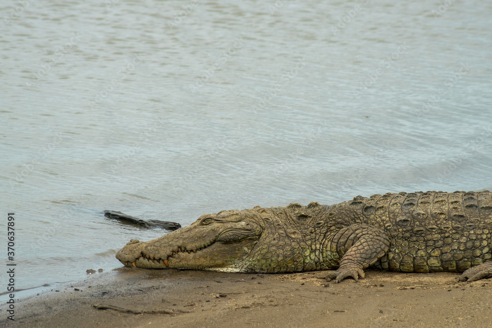 Close-up of a crocodile resting at the lake in Udawalawa national park, Sri Lanka