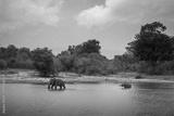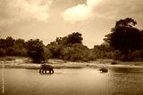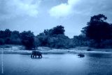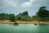 elephants in the lake, Udawalawe, Sri lanka. Mother and son elephants having a bath in a jungle lake