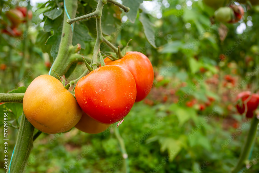 Fresh organic tomatoes field greenhouse, Antalya / Turkey