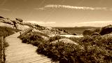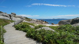 Wooden footpath along the coast in Galicia, Spain, Atlantic ocean, province of Pontevedra, Praia Abelleira, San Vicente do Grove