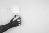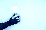 Woman's hand washes dirty wall.