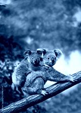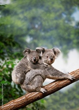 Koala, phascolarctos cinereus, Mother with Young standing on Branch
