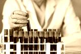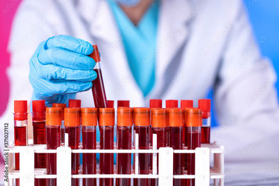 Technician holding blood tube test in the research laboratory