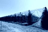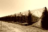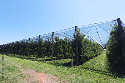 Protection nets against birds, insect and hailstones on a apple orchard In the italian countryside