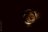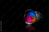 Professional digital camera with lens attached.
