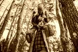 Couple travelers is so fun in the forest. Concept of trekking, adventure and seasonal vacation.