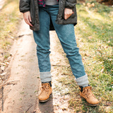 Hiking and travel along in the forest. Concept of trekking, adventure and seasonal vacation. Young woman walking in woods.