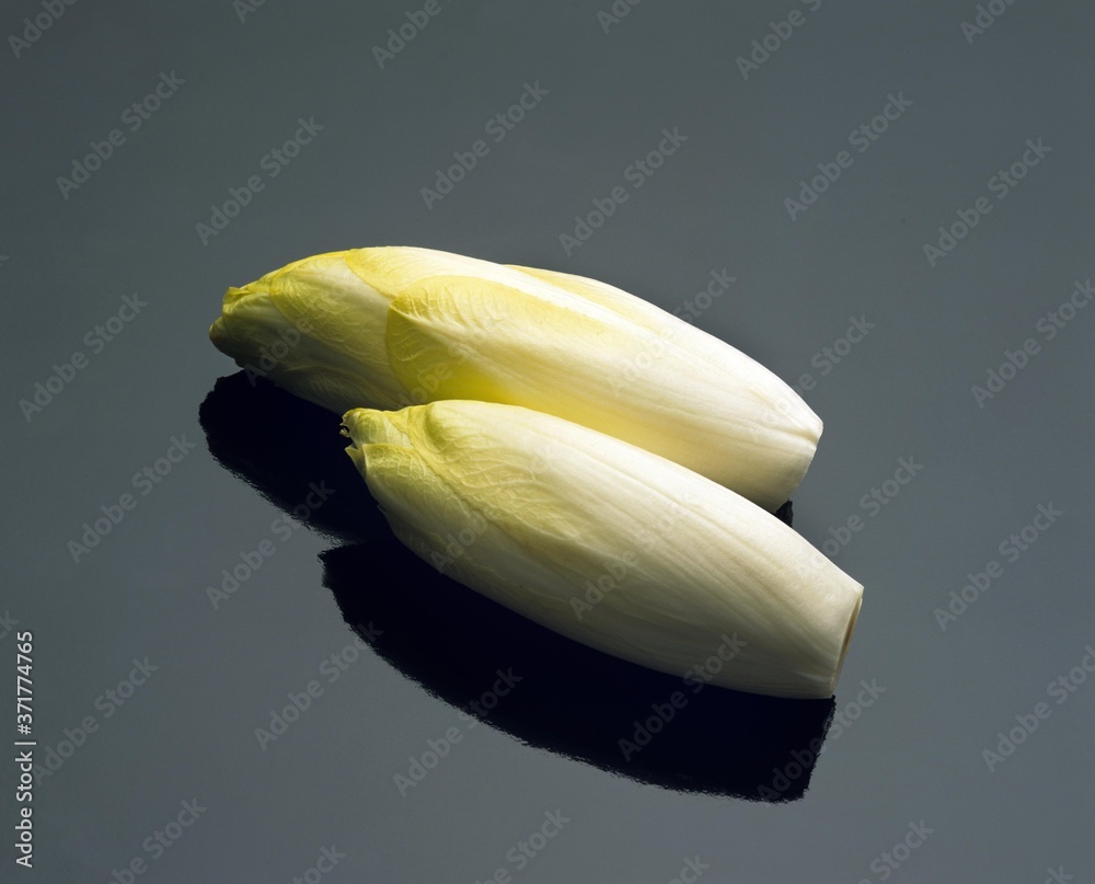 Chicory, cichorium endivia against Black Background