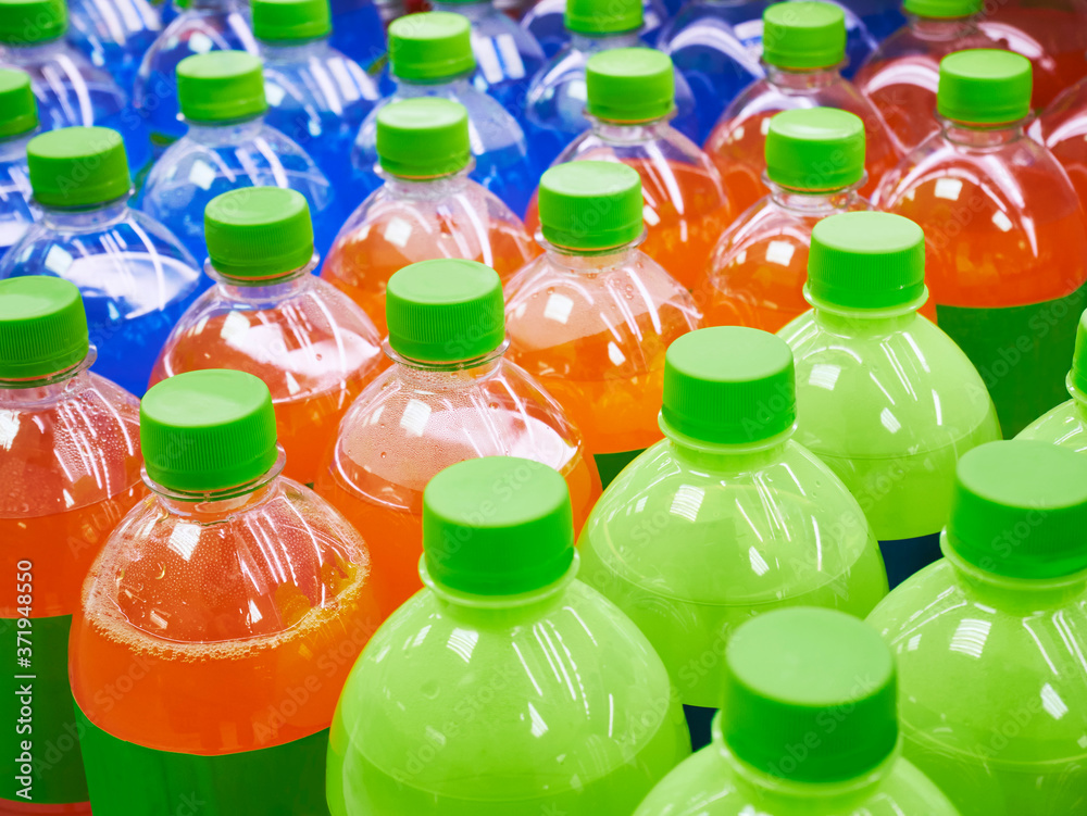 Sweetener Beverage bottles Colourful drinks on supermarket shelf