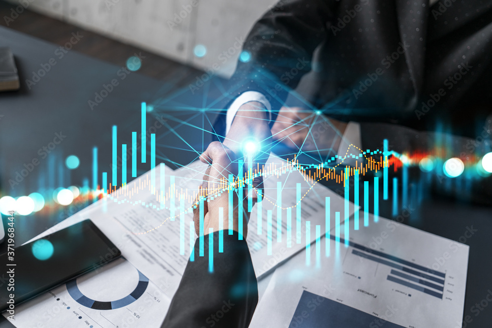 Handshake concept. two business people make a deal. forex graph double exposure.