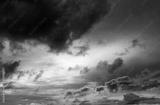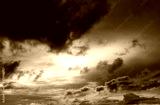 Sunset sky and gray and golden clouds. Gray sky and fluffy clouds. Thunder and storm sky. Sad and moody sky. Dead abstract background. Cloudscape. Peaceful and tranquil background. Beauty in nature.