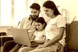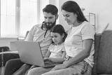 Family with daughter waiting video call for online doctor consultation on laptop at home