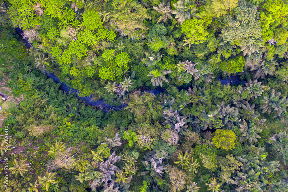 Top View of River in Rainforest. Jungle in Ubud, Bali, Indonesia