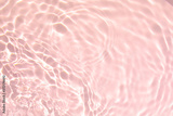 Closeup of pink transparent clear calm water surface texture with splashes and bubbles. Trendy abstract summer nature background. Coral colored waves in sunlight.