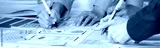Brainstorm planing creative teamwork, Close up of hands mobile phone app developer team meeting about screen display prototype layout for smartphone, ui, ux concept