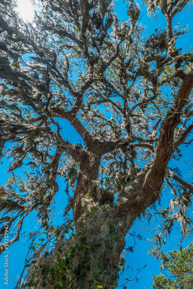 Live oak with spanish moss upwards