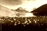 Picturesque view on Bachalpsee lake in Swiss Alps mountains. White flowers blooming on a foreground. Grindelwald valley, Switzerland. Landscape photography
