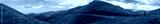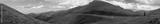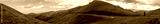 Beautiful panoramic view of green mountains with dangerous gravel road. Ketmen or Ketpen mountains gorge and mountain pass. Tourism in Kazakhstan.