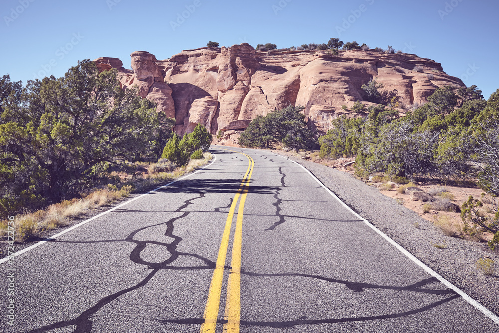 Scenic road in Colorado National Monument Park, color toned picture, Colorado, USA.
