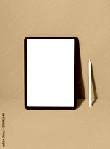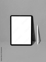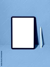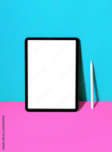 New tablet on color background with pencil