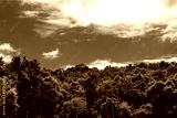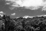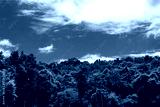 Dense green tree in the forest with blue sky and white clouds on sunny day. Tropical tree in the woods. Clean and fresh air. Oxygen source for the earth. Clean environment. Tropical jungle.