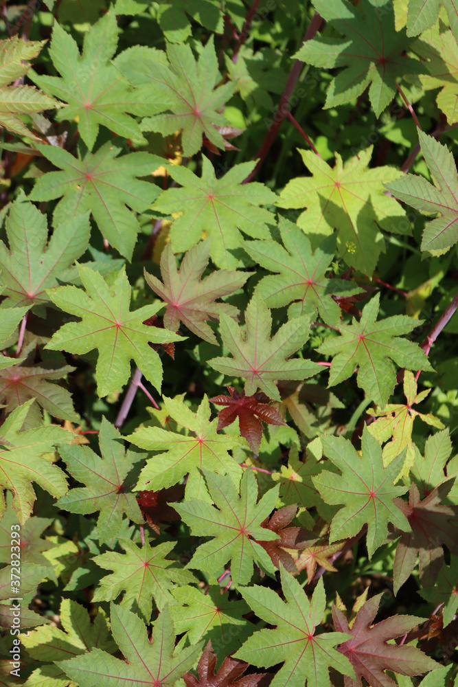 Ricinus communis plant in the garden.Castor oil plant growing in the field