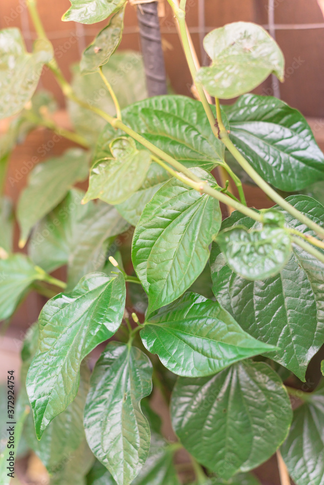 Betel leaves in family Piperaceae growing at backyard garden near Dallas, Texas, USA