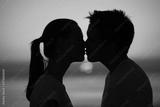 silhouette of a couple kissing at sunset