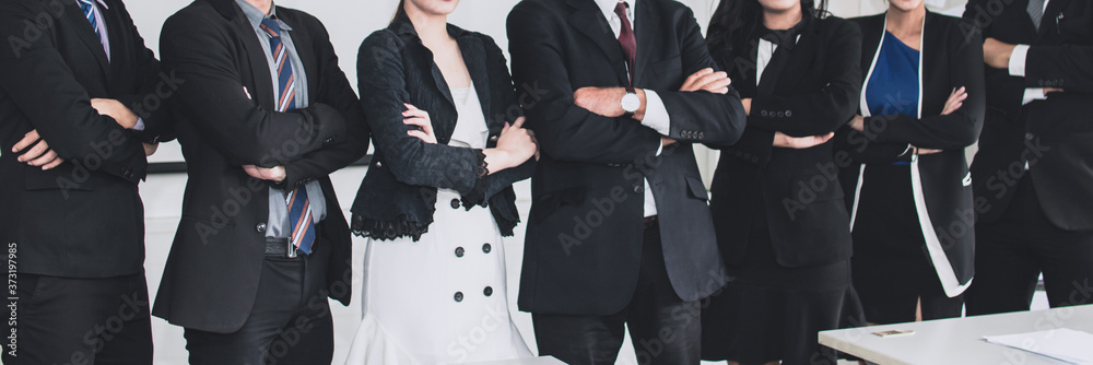 Group of business people in suit stand with arms folded, teamwork and team concept