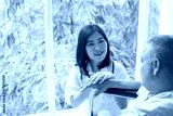 Smiling patient keeping hand of doctor and encourages the elderly patient in hospital