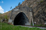 Old tunnel on Circum-Baikal Railway, lake Baikal. Baikal. View from one tunnel to other tunnel. Circum-Baikal Railway. Irkutsk region.