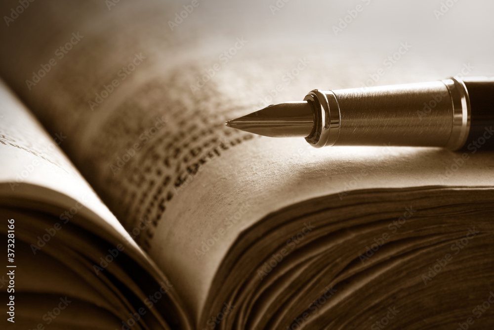 Old book and pen