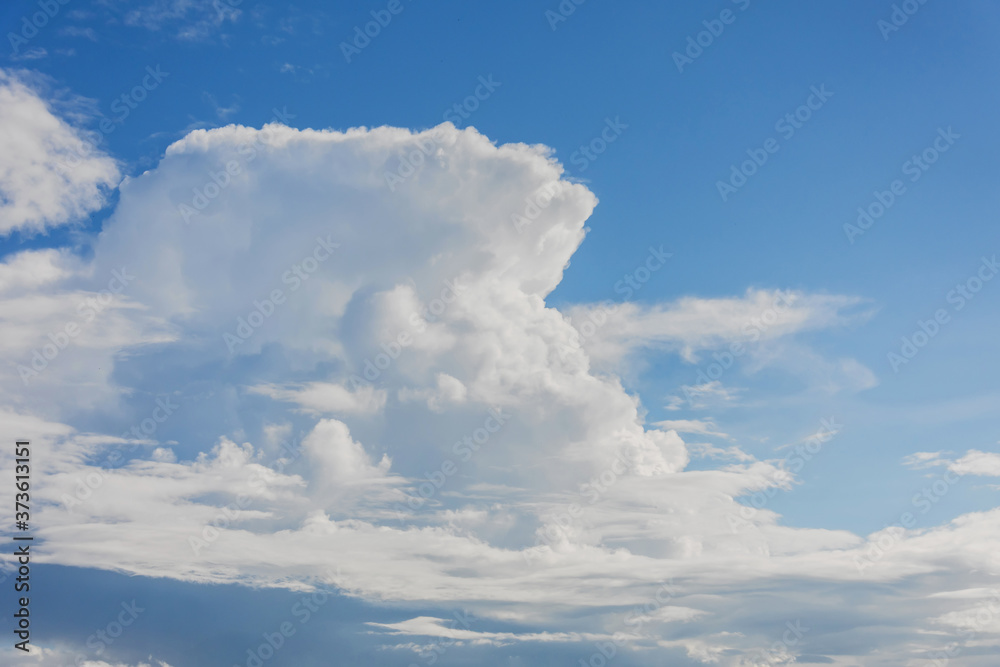 Beautiful sky with powerfully cumulus rainy clouds on a sunny day.