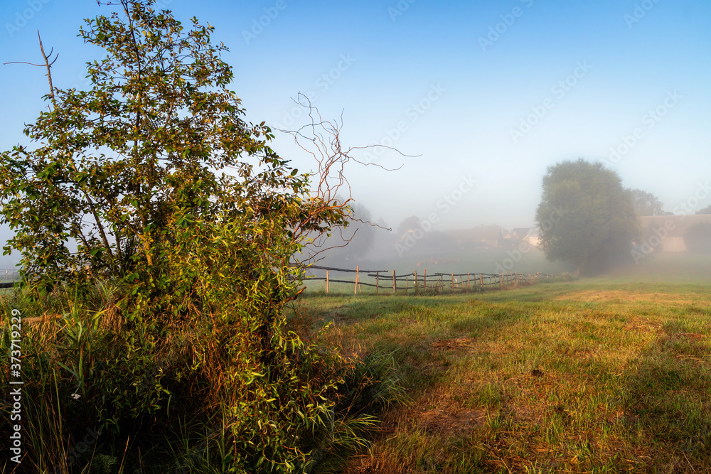 Poranne mgły w Dolinie Narwi, Podlasie, Polska