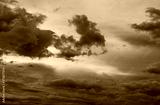 Sunset sky with gray and golden clouds. Gray sky and fluffy clouds. Thunder and storm sky. Sad and moody sky. Dead abstract background. Cloudscape. Peaceful and tranquil background. Beauty in nature.