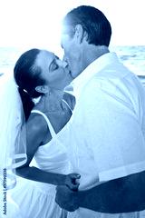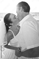 Bride & Groom Married Couple Kissing Sunset Beach Wedding
