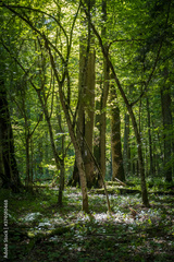 Immersive beauty of natural, ancient dense forest with old oak in foreground