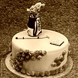 Designed birthday cake on a green grass background, Golf theme
