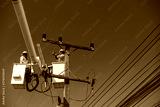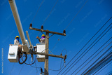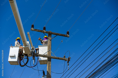 maintenance of electricians work with high voltage electricity on the hydraulic bucket with transformer