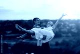 Funny happy couple having fun outdoors. Guy raised his lover in his arms, girl laughs.