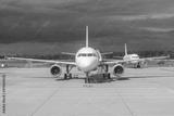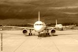 Aircraft maintenance parked in the open air airport, engine repair and mechanics check testing.