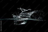 close up of water waves splash and bubbles isolated on black background.