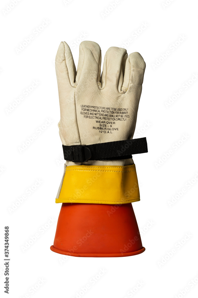 Low Voltage Leather Linesman Protector Glove isolated on white background