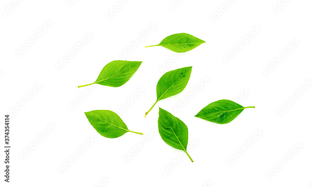 Basil leaves isolated on white background. Green ocimum basilicum Linn leaf.