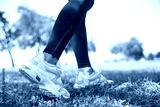 Close up shot of runner's shoes