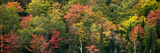 Autumn forest. Deciduous forest in autumn and on maple trees, the color of the foliage changes to yellow and orange