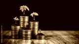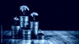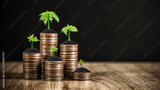 Pile of coins are stacked in a graph shape with trees growing for money saving ideas and financial planning insurance.
