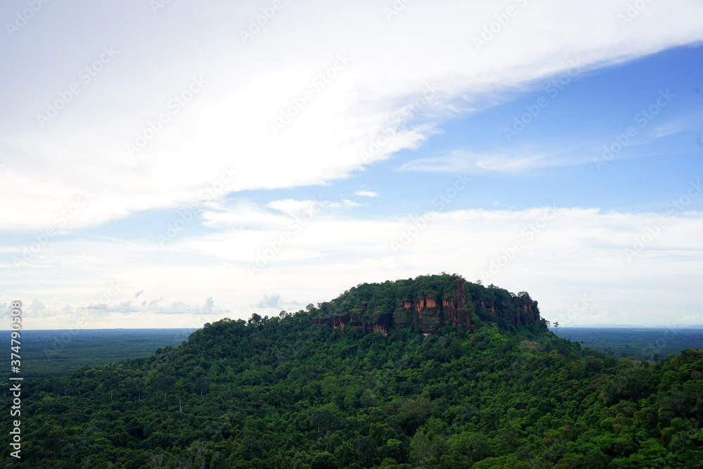 Beautiful mountain landscape with red stone cliff of Phu Thok the famous tourist attraction of Bueng Kan