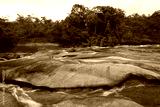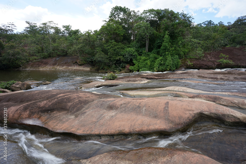 Beautiful horizontal waterfall landscape of Chet Si Waterfall the tourist attraction of Bueng Kan