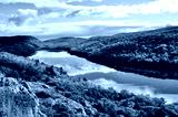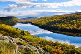 Lake of the Clouds in Porcupine Mountains Wilderness State Park, Michigan’s largest state park. Amazing natural beauty in fall season and gorgeous blue clouds reflection in water.